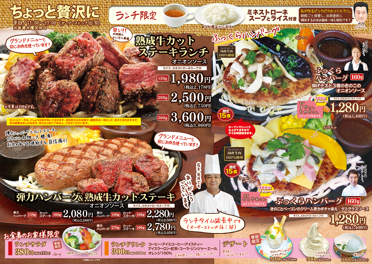 年4回リニューアル。カウベル季節のおすすめメニューをご紹介します。 ※メニュー画像をクリックすると拡大表示されます。