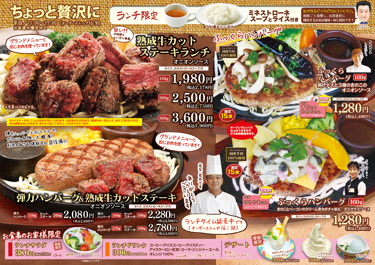 弾力バーグ発祥の地、本店のグランドメニューをご紹介