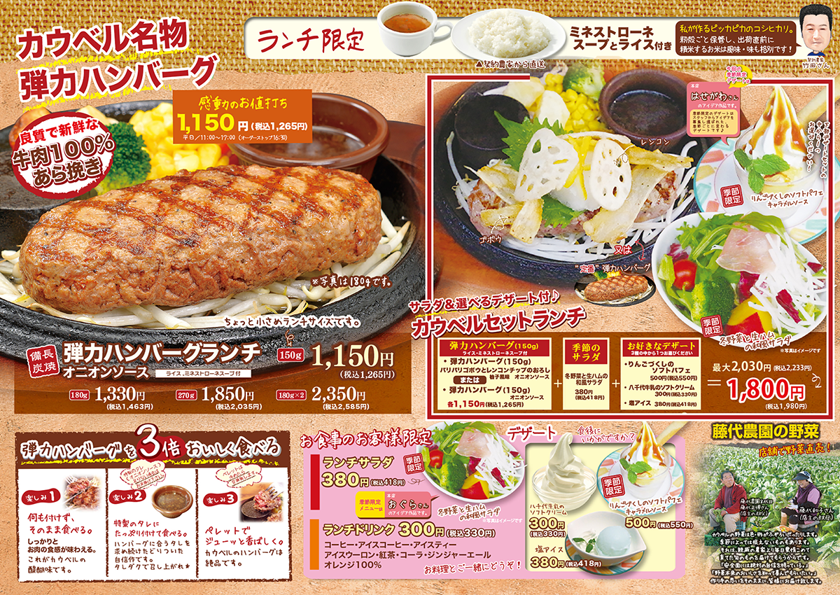 年4回リニューアル。カウベル季節のおすすめメニューをご紹介します。 ※メニュー画像をクリックすると拡大表示されます。